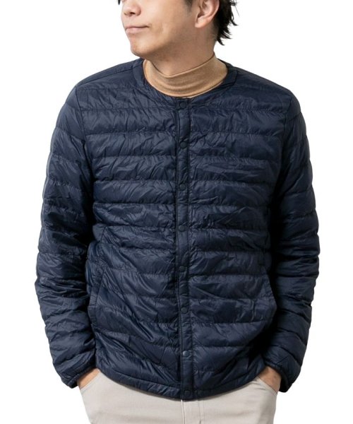 インナーダウン ジャケット メンズ 秋冬 ダウン80 軽量 防寒 抗菌 防臭 クルーネック ポケッタブル Geneless Geneless Magaseek